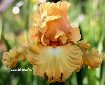 (Троцкий А.К. *2019*) ТВ, ML, НР – 92 см..Стандарты – абрикосовые. Фолы – абрикосово-сиреневые с абрикосовыми краями. Бородка - ярко оранжевая. Гофрированный и слегка кружевной.